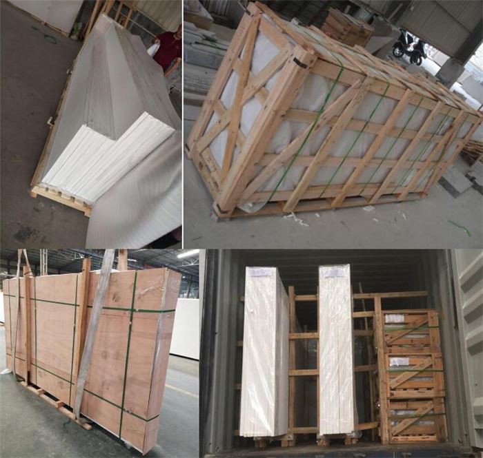 Fümigasyona tabi tutulmuş ahşap kasalarda fayans ve tezgah. İçi köpüklü plastik (polistiren) ile kaplanacaktır.